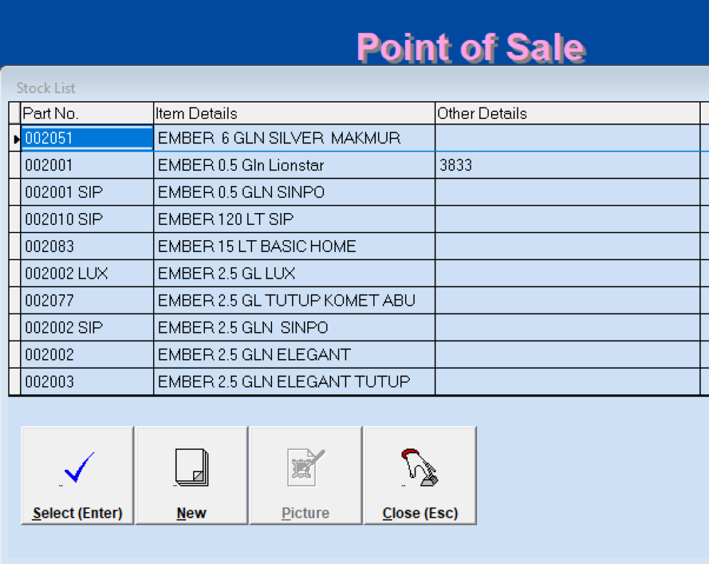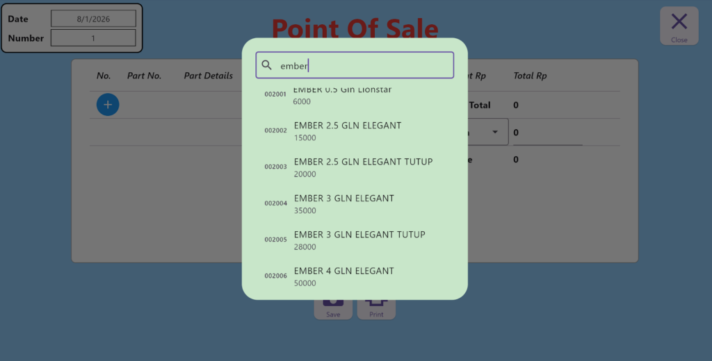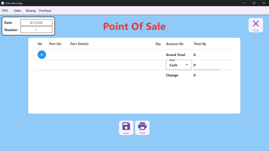 Dalam aplikasi lama, untuk menambahkan barang, diperlukan untuk menekan tombol keyboard F10. Dalam aplikasi baru, ditambahkan tombol (+) di bagian kiri tabel untuk memudahkan penggunaan.
